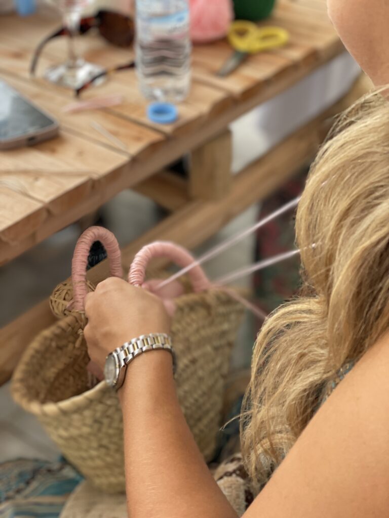 Learn the art of traditional Moroccan embroidery on palm baskets in a hands on creative session accompanied by a warm tea time to relax and share moments together.